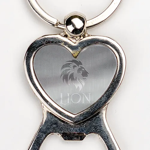 25 Chaveiro Abridor Coração – 45x30mm em Metal – 1×0 – Gravação Laser – Modelo Padrão